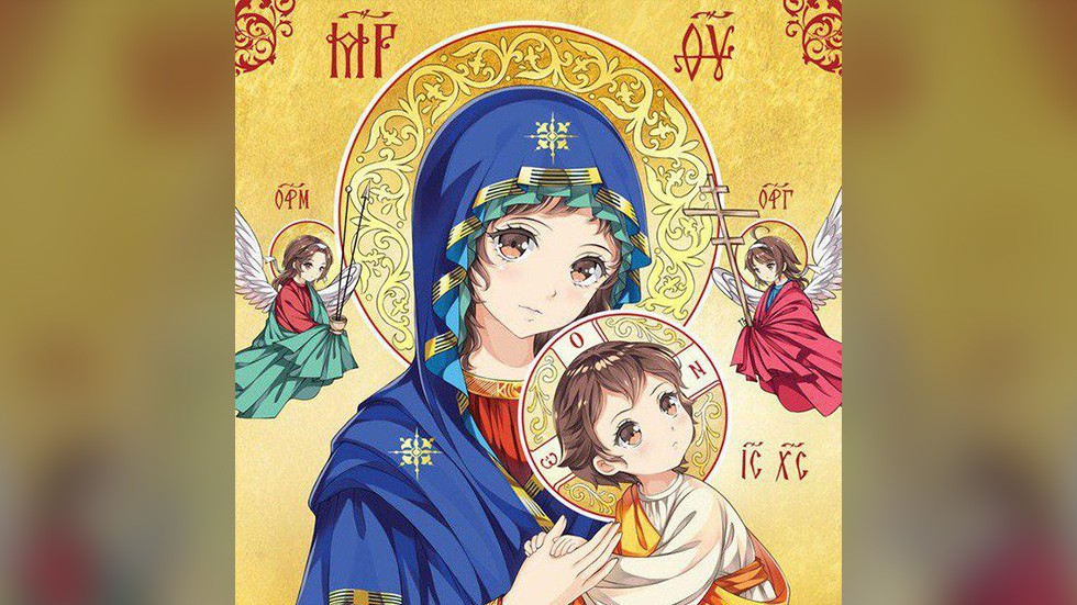 Pe o rețea de socializare din Rusia sunt distribuite icoane în stilul desenelor animate japoneze (anime). Imaginile, făcute de artiști digitali necunoscuți, sunt postate într-un grup cu mii de membri. Reprezentările lui Iisus Hristos, Fecioarei Maria și altor sfinți cu ochi foarte mari și coafuri exagerate au captivat internațiunii din Rusia. Dar au provocat și proteste din partea preoților și credincioșilor.